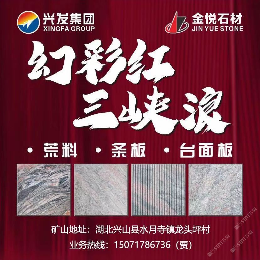 公司生產(chǎn)和銷售石材品種主要為三峽浪(幻彩紅、幻彩灰)、三峽紅、芝麻白(芝麻灰、芝麻黃)和夜藍(lán)星系列,特別是三峽浪和三峽紅品種,材質(zhì)好、花紋奇特,是國內(nèi)目前的生產(chǎn)地。公司主導(dǎo)建設(shè)的工業(yè)園距宜昌市興山縣峽口長江碼頭40公里;距宜昌市貨運火車站60公里;距宜昌市長江集裝箱碼頭65公里,熱忱歡迎國內(nèi)外客商前來洽談合作,并誠招代理商。