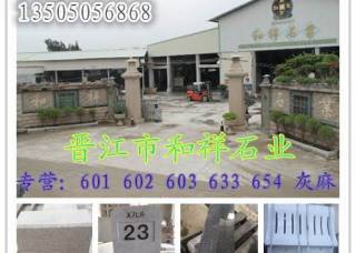 【主營經(jīng)營】G601 G602 G603 G604 G623 G654 G606 惠安灰麻等,生產(chǎn)薄板、厚板、路沿石、異形、圓球、車擋石各種加工工藝品等。適合用于各種工程,自有優(yōu)質礦山資源以質量求生存、以信譽求發(fā)展。 聯(lián)系電話:13505056868 13328556999
