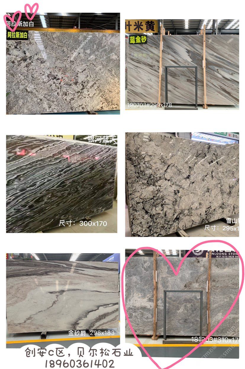 藍金沙、藍貝魯、紫色暢想 、夢幻棕、熱帶雨林、德國紅砂石英石荒料大板及工程板
