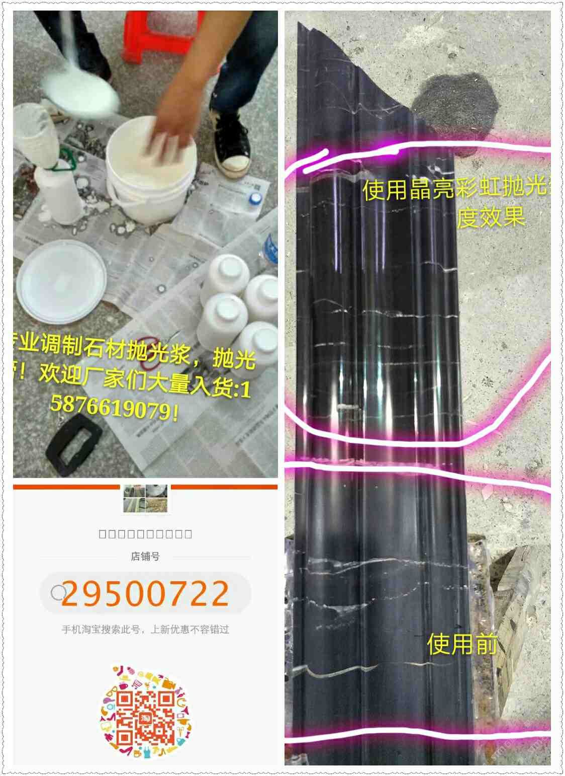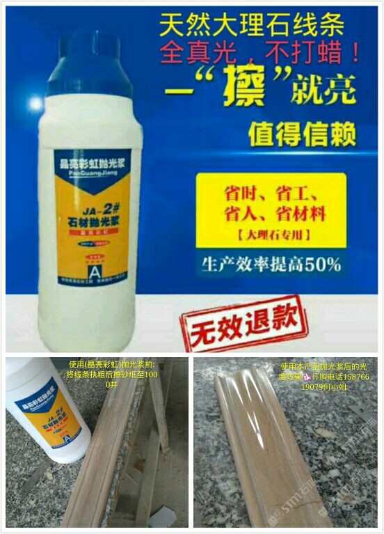 (晶亮彩虹拋光漿)為配方調(diào)制。從2016年5月份開始靠著技術(shù)員親自逐間上門到云浮多家石材工藝廠施展產(chǎn)品使用技術(shù)和試驗產(chǎn)品光度效果取得了各家老板和工藝師們的稱贊和認可,通過短短一年的時間品牌:晶亮彩虹拋光漿全國省地已約2000家石材廠正在使用,市場反應(yīng)效果顯注,現(xiàn)面向全國誠招代理商。客服熱線:15876619079