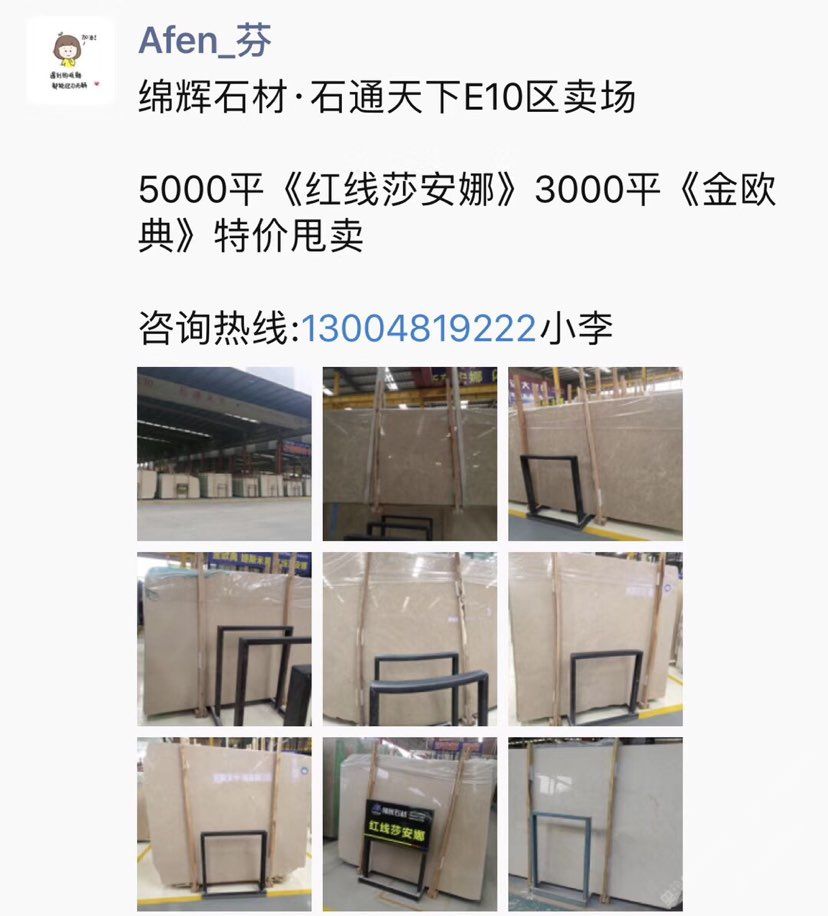 主營《紅線莎安娜》《美尼斯灰·新古堡灰》《金歐典》,每月持續(xù)到貨,日均庫存大板20000平,荒料2000噸。可為批發(fā),零售,工程單提供各種板面質(zhì)量/規(guī)格/價位需求!