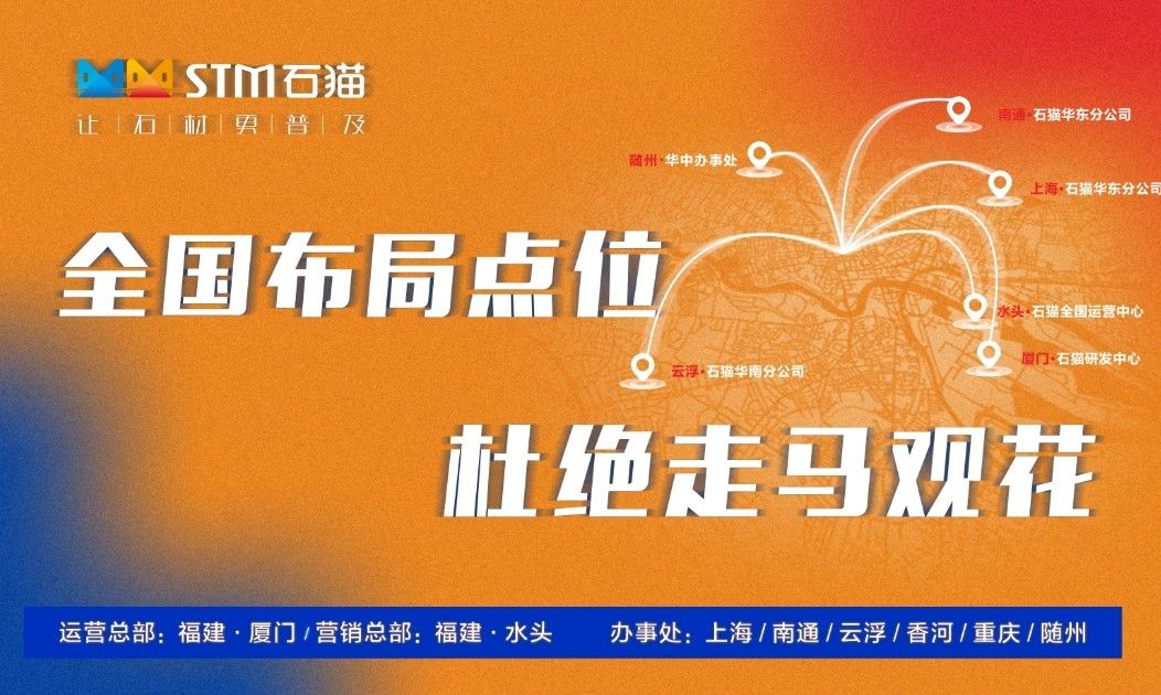 華東分公司先后與華東石材市場合作,包括上海東華環(huán)球石材市場、中首萬石國際石材市場、南通東升產(chǎn)業(yè)園、六泉國際石材市場等,隨后又與華東知名石材企業(yè)南通新景石材有限公司、隆川石材、康典石業(yè)、新鵬飛石業(yè)、宜興隆嘉石業(yè)、新澤海石業(yè)、南通杰恒石業(yè)、珍品玉石合作,打造共贏局面。石貓致力于與各大優(yōu)秀石企共同進步,共同發(fā)展,尋求石材行業(yè)新發(fā)展。