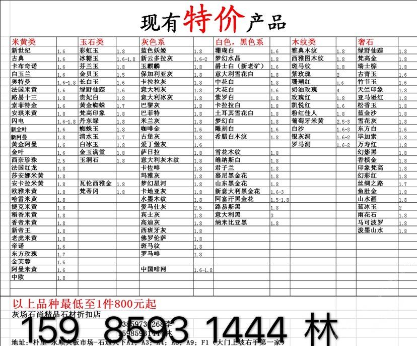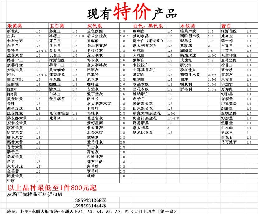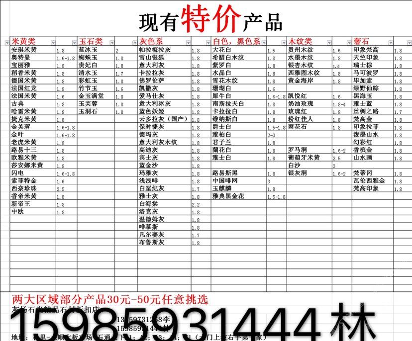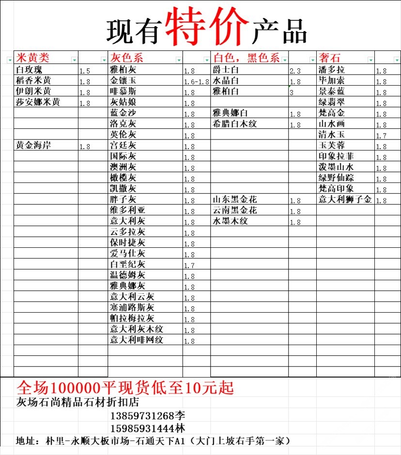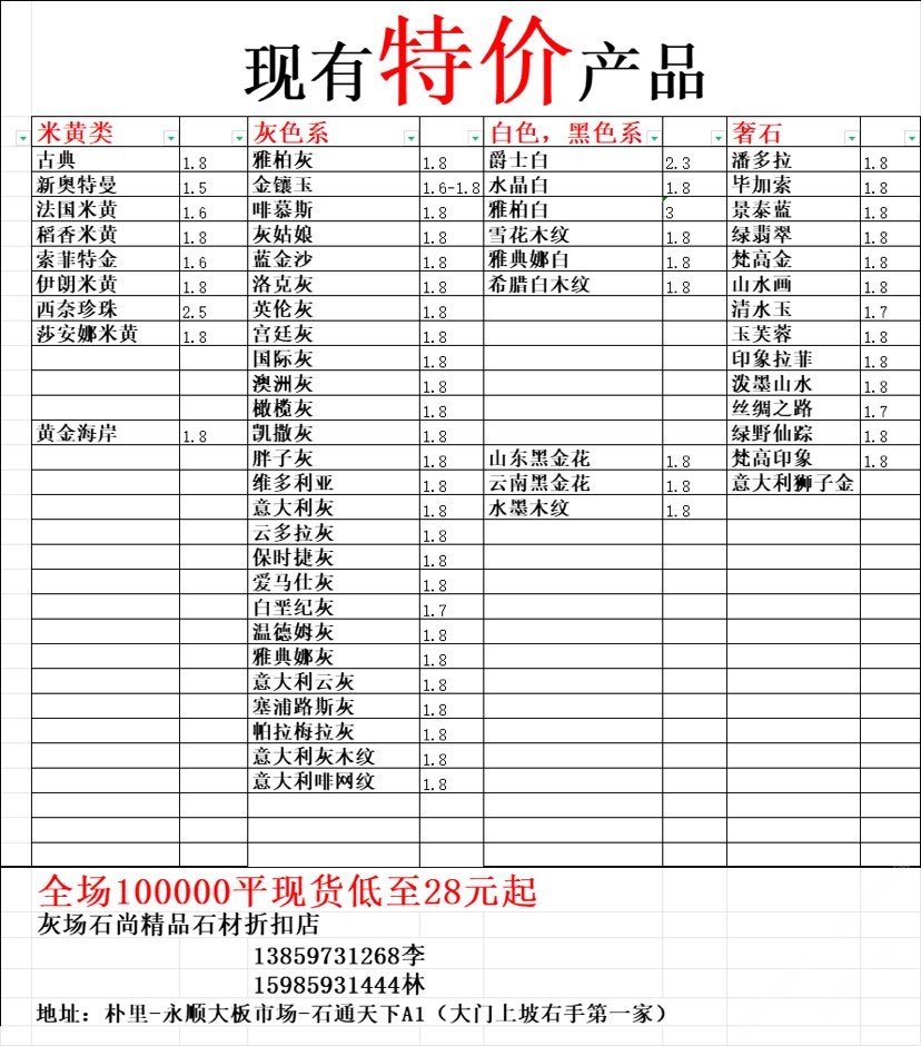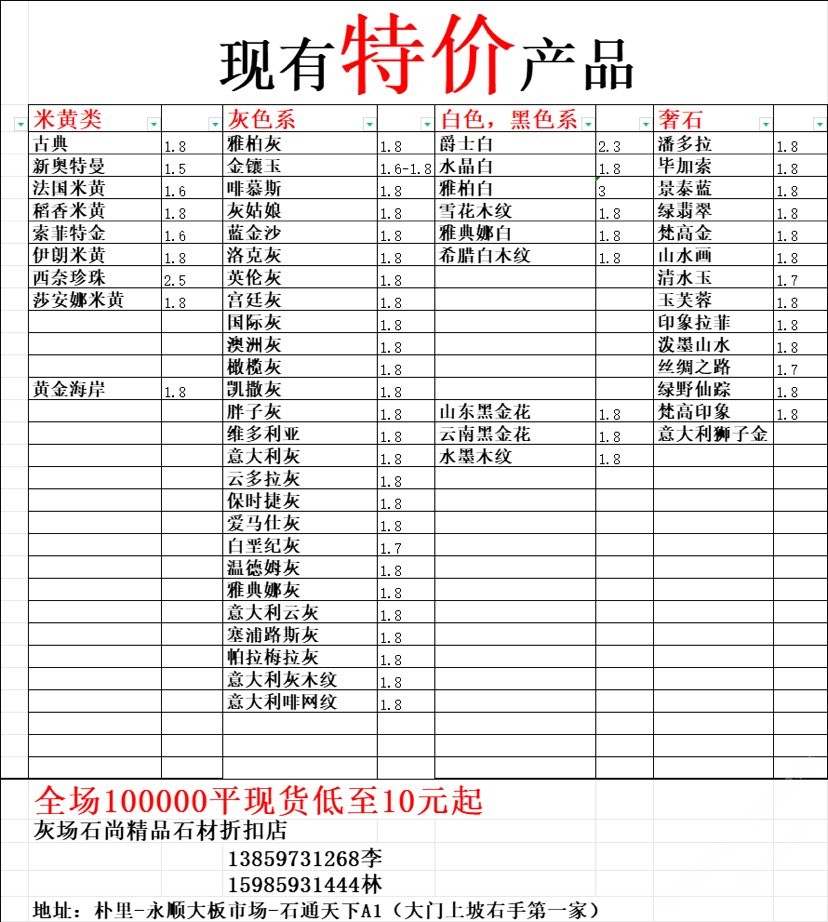 現(xiàn)有100000平大板特價(百來個品種),低至30元起