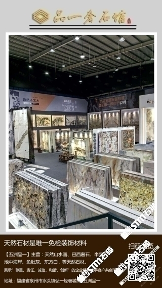 福建省泉州品一石材有限公司(品牌:五洲品一)座落在聲譽(yù)海內(nèi)外賦有“世界石都”的福建省泉州市水頭鎮(zhèn),公司成立于2018年,是一家集設(shè)計(jì)、生產(chǎn)、貿(mào)易為一體的天然山水畫廠家。