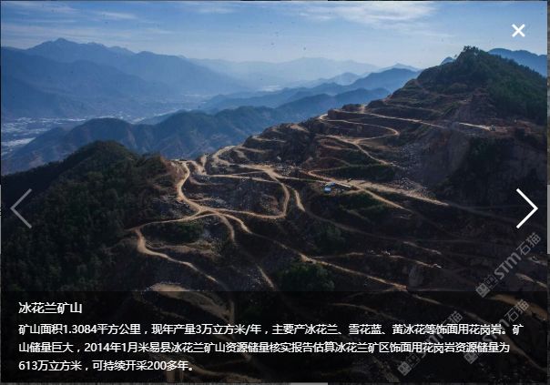 位于四川省攀枝花市米易縣,本公司專業(yè)做花崗石礦山開采、花崗石板材生產(chǎn)及銷售。與廈門萬里石股份有限公司合作開采“冰花藍(lán)”寨子山礦山,與高時(shí)石材米易愉天礦業(yè)合作開采“冰花藍(lán)”石板溝礦山,并自有“豹皮花”礦山和米易東成礦業(yè)。年產(chǎn)花崗石荒料3萬立方,在米易長坡工業(yè)園區(qū)控股三個(gè)工廠合計(jì)面積120余畝。年產(chǎn)花崗石板材80萬平米。旗下主要產(chǎn)品:“冰花藍(lán)”、“豹皮花”、“芝麻黑”、“芝麻灰”。產(chǎn)品主要用于大樓外墻干掛、廣場(chǎng)地鋪、路緣石、墓碑石、景觀園林用石等。
