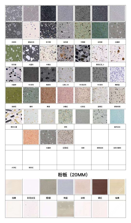 云浮市華達(dá)聚賢新型石材有限公司是一家以研發(fā)制造、加工、銷(xiāo)售新型人造石、天然石及其制品的企業(yè)。公司位于云浮市云安區(qū)石城鎮(zhèn)上洞村,占地面積30000平方米,年可生產(chǎn)人造無(wú)機(jī)石板材、自流平仿石材產(chǎn)品120萬(wàn)平方。公司擁有原材料生產(chǎn)配套基地,保證日常生產(chǎn)所需的石料、石粉,有成品加工生產(chǎn)車(chē)間,有直營(yíng)門(mén)店銷(xiāo)售,能為客戶(hù)提供從原材料選料、打樣定制、生產(chǎn)加工、工程配套等服務(wù)。華達(dá)聚賢新型石材無(wú)機(jī)水磨石、仿石材產(chǎn)品,屬于循環(huán)利用環(huán)保產(chǎn)品,所有原材料都是無(wú)機(jī)類(lèi)選材,產(chǎn)品美觀實(shí)用,耐污耐磨,防火性能好,無(wú)異味,色彩斑斕,搭配元素多樣,深受?chē)?guó)內(nèi)外設(shè)計(jì)師喜愛(ài),適用于家具、商場(chǎng)、學(xué)校、酒店、地鐵站、政府機(jī)關(guān)、企業(yè)機(jī)構(gòu)等大型公共設(shè)施室內(nèi)外鑲貼,屬新型環(huán)保建材。公司通過(guò)GB/T19001-2016idtISO9001:2015質(zhì)量管理體系認(rèn)證和GB/T24001-2016idtISO14001:2015環(huán)境管理體系認(rèn)證。