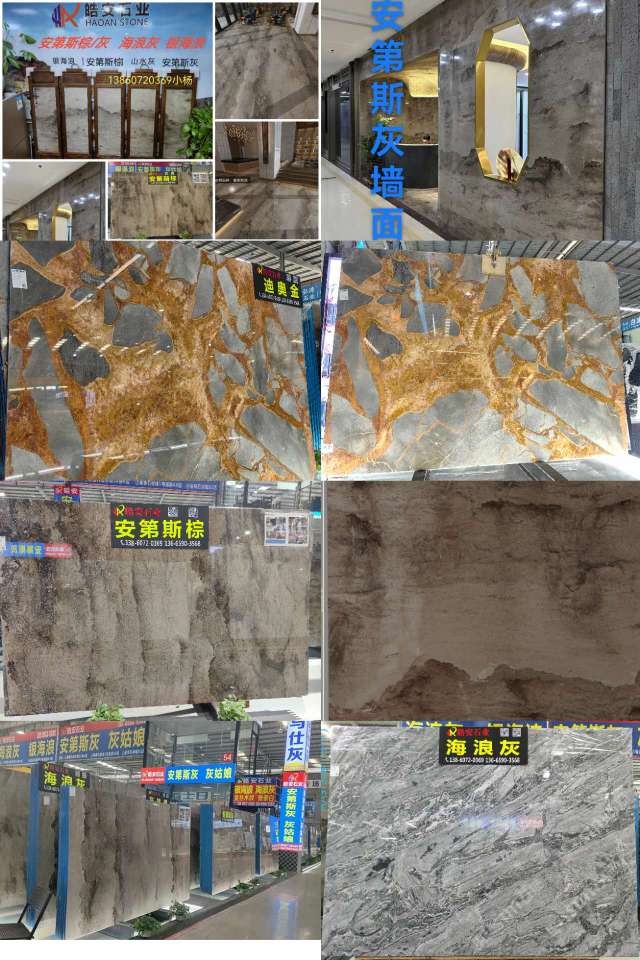 皓安石業(yè):主營(yíng)(一):→安第斯棕~山水灰~水墨棕,其紋路是安第斯山脈連綿不斷,雄偉壯觀,大自然的鬼斧神工之水墨畫(huà)般層次分明,若隱若現(xiàn)似山似水又似景的灰色天然大理石…主營(yíng)(2):海浪灰→銀海浪,波濤灰~其紋理變化莫測(cè),猶如海納百川,呼嘯而來(lái),卷起千重浪,氣勢(shì)恢宏!自然寫(xiě)意,不拘章法,大氣而靈動(dòng)適用于各種高檔場(chǎng)所的異型拼花、電視背景墻、各種吧臺(tái)等…是工裝家裝理想的裝飾材料…