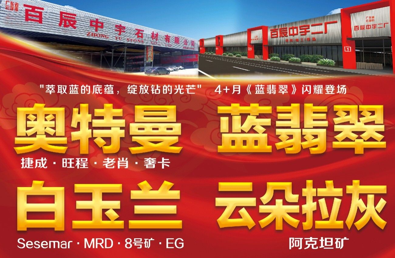 百辰中宇石業(yè)有限公司:源于2010年,至2018年擁有云浮河口工廠、水頭永泉山一廠和水頭福山工業(yè)區(qū)百辰中宇二廠??傆?7臺切機,5臺線鋸,4臺立體烘干線,5臺磨機。年產(chǎn)量可達到160萬平起。