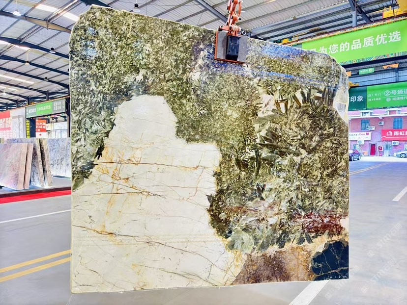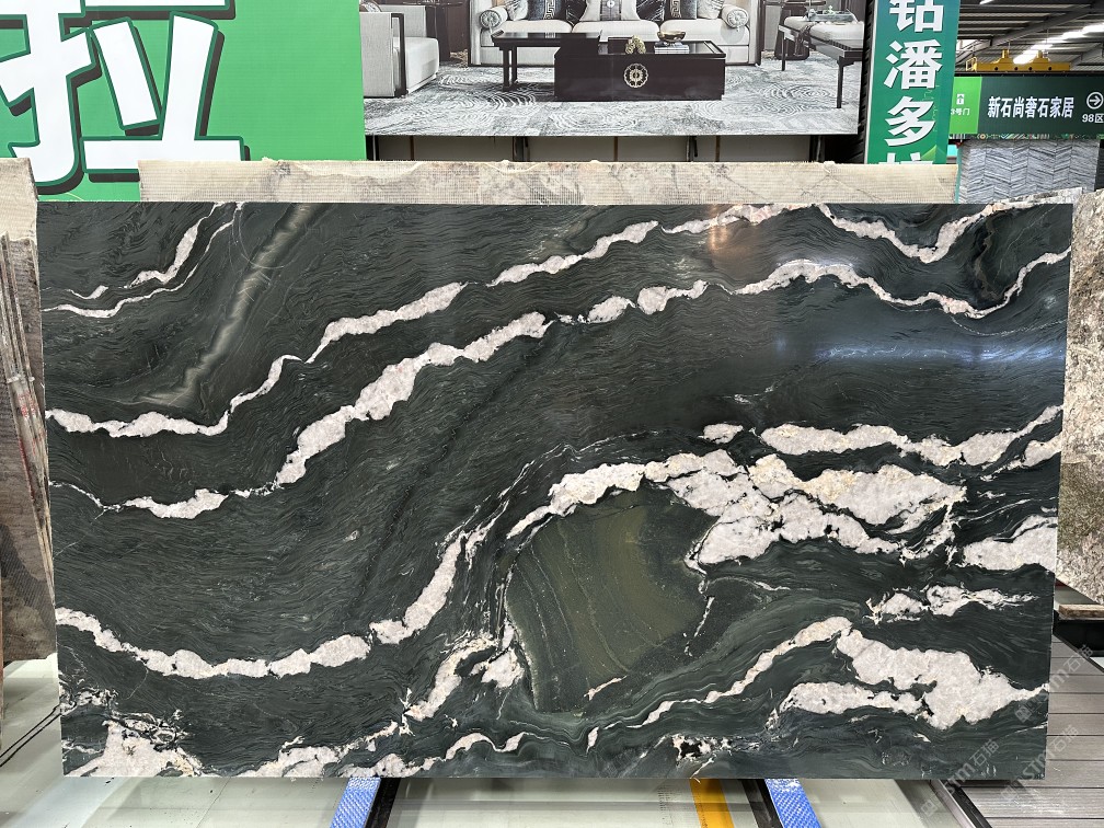九州匯全球總代品種:綠鉆潘多拉\ 是綠色系頂奢當(dāng)中的代表之一\ 其板面色彩豐富迷人,紋路變幻無窮\ 主要的是它罕見的鑲嵌有綠色晶體\ 似鉆石般閃耀亮眼。\ 我們難以找到另一款奢石能夠替代它的獨(dú)特與稀有。\ 綠鉆潘多拉礦中國總代位于世界石都\ ——福建水頭中閩石材城2號(hào)大門2號(hào)通道9區(qū)