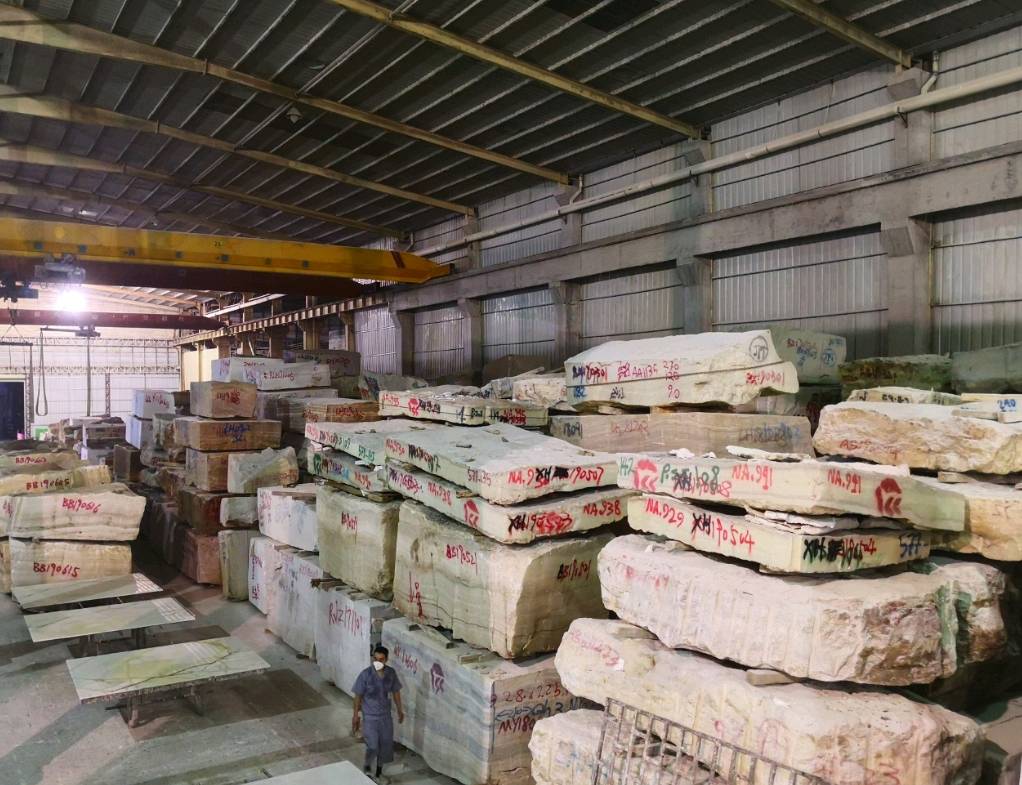 宏星玉石一廠(云浮):占地面積19000㎡,其中大板庫房面積10000㎡,辦公生活區(qū)1500㎡,主要負(fù)責(zé)玉石大板產(chǎn)品展示、銷售、工程接待。加工生產(chǎn)車間7500㎡,主要負(fù)責(zé)玉石大板生產(chǎn)加工及荒料堆放。公司引進(jìn)加工設(shè)備有:BM大鋸、云浮快鋸、全自動拋光線、烘干機(jī)、紅外線橋切機(jī)、電腦仿形線條機(jī)等大型設(shè)備。\\\