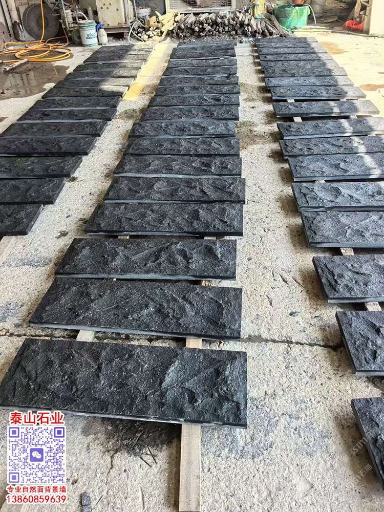 老礦芝麻黑自然面背景墻文化石蘑菇石柬埔寨芝麻黑景墻
