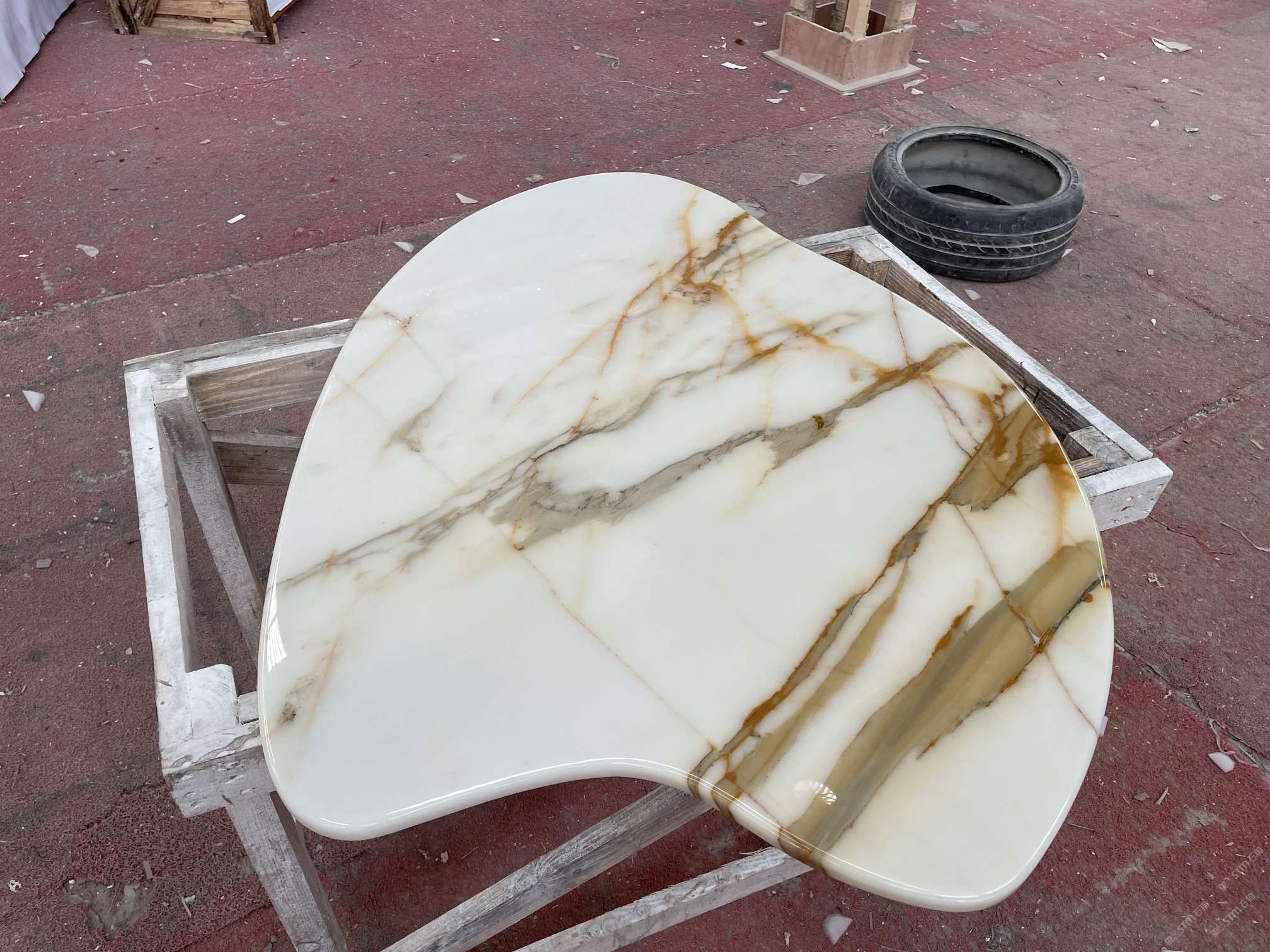 上海別墅魚肚金天然大理石導(dǎo)臺定制案例