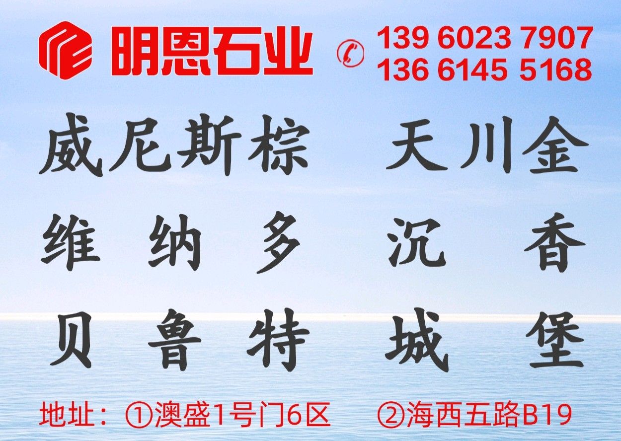 上海明恩石業(yè)有限公司 聯(lián)系人:鄭文永    136****5168 查看 手機(jī)號(hào)碼:無(wú) 主營(yíng)范圍: 大板批發(fā)、荒料、大理石加工、 企業(yè)地址:上海上海嘉定區(qū)曹安公路4135號(hào)(藍(lán)英石材內(nèi))