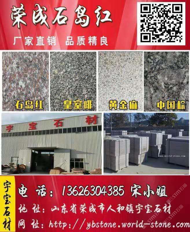 發(fā)布信息: 山東榮成市宇寶石材廠家直銷:皇室啡、石島紅8#、黃金麻,石島蝦紅(新品)、皇室珍珠、皇室玫瑰、皇室棕鉆、紫晶鉆、榮成灰、威海白麻、黃金麻等系列毛板,工程板,蘑菇石及臺(tái)階石異型石材產(chǎn)品。另有大量地鋪庫存拋售。真摯邀請新老客戶,來廠實(shí)際考察,一次合作,為友 。請加好友,找一個(gè)合適的廠家不容易,找一個(gè)可以長期合作的廠家更不容易,以防備用。電話:13626304385微信號同手機(jī)號13626304385