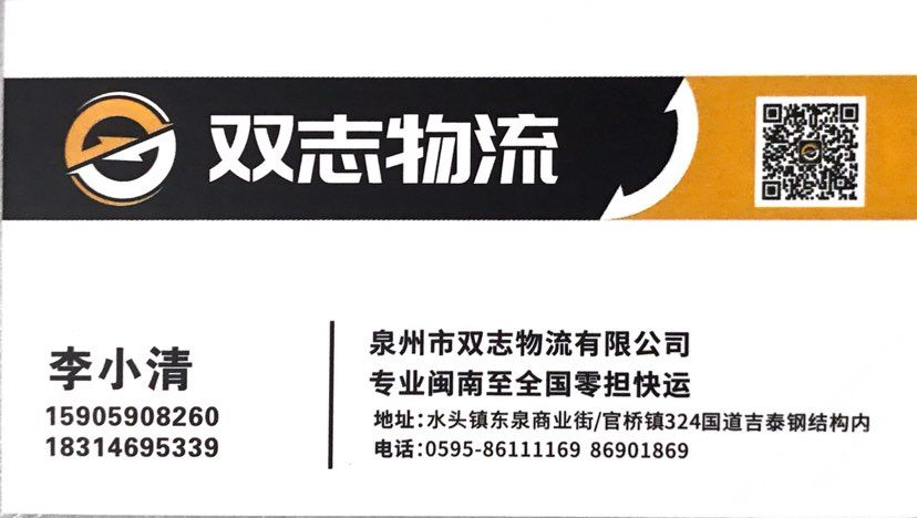 發(fā)布信息: 水頭雙志物流十六年專注零擔(dān)運輸,現(xiàn)已加盟全國快運5強順豐集團(tuán)旗下順心平臺,網(wǎng)絡(luò)覆蓋全國,網(wǎng)上實時跟蹤查件,歡迎廣大客戶前來監(jiān)督指導(dǎo)。地址:福建省泉州市水頭鎮(zhèn)東泉商業(yè)街/水頭樸山村洋美茂250-3號/官橋鎮(zhèn)324國道田墘120-5號雙志物流官橋分公司。全國統(tǒng)一服務(wù)熱線:0595-86111169 手機微信同號:13505987769/15905908260李(女士) #水頭十六年雙志物流專業(yè)閩南至全國零擔(dān)快運倉儲配送!#