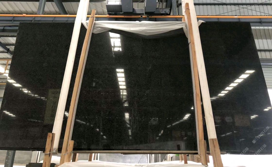 質(zhì)地異常堅硬,吸水率近乎零, 光澤度高,板面無色差無瑕疵, 純黑透亮,屬高檔品種。