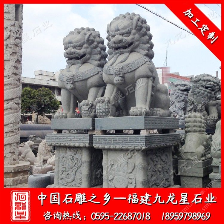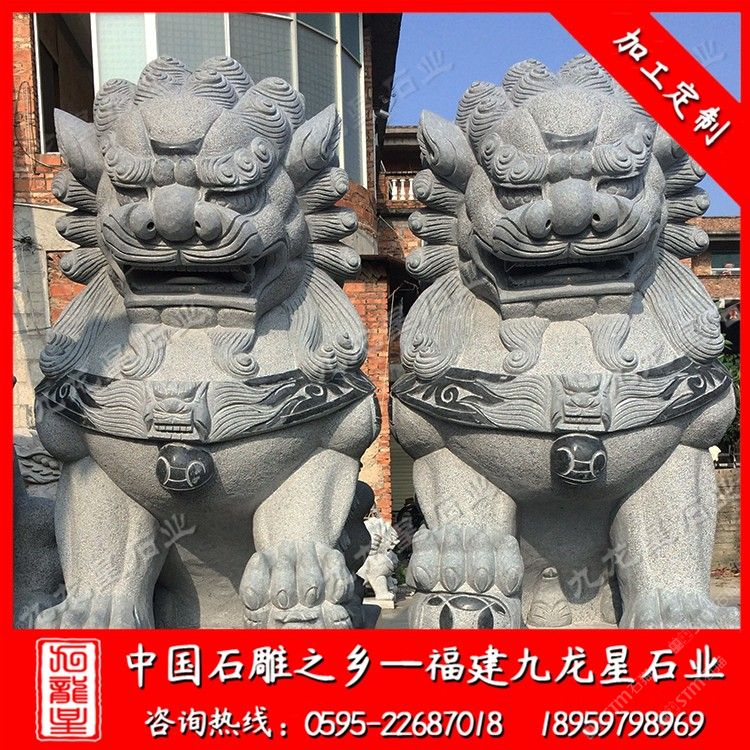 發(fā)布信息: 九龍星石業(yè)是石雕獅子廠家,從事石雕獅子加工制作20多年,石雕獅子款式多樣,價格合理。石雕獅子材質可以為花崗巖、大理石、漢白玉、青石等等,望廣大新老客戶前來參觀考察和選購。 石雕獅子顧名思義就是有石材雕刻而成的石雕獅子,石刻石獅子寓意很多,深受人們喜歡,民間流傳石雕獅子的寓意都很吉祥。 傳統(tǒng)石雕獅子作為中國傳統(tǒng)建筑中經(jīng)常使用的一種裝飾物,人們喜愛將它擺放在家門口,有的獨立的獅子把門,有的放在門枕石上,有的與石鼓結合在一起。石雕獅千姿百態(tài),造型靈活。自唐代以來的大型石雕獅子基本上保持統(tǒng)一的坐姿,與漢代獅子石像常有的匍匐姿態(tài)相比,更接近于休憩而非狩獵,反映出唐代時期生活的富足、社會的安定,以及整個社會尤其是統(tǒng)治階級追求安逸、享樂的心態(tài)。大型石雕獅子有3米石獅子、2.8米石獅子也有2米石獅子。
