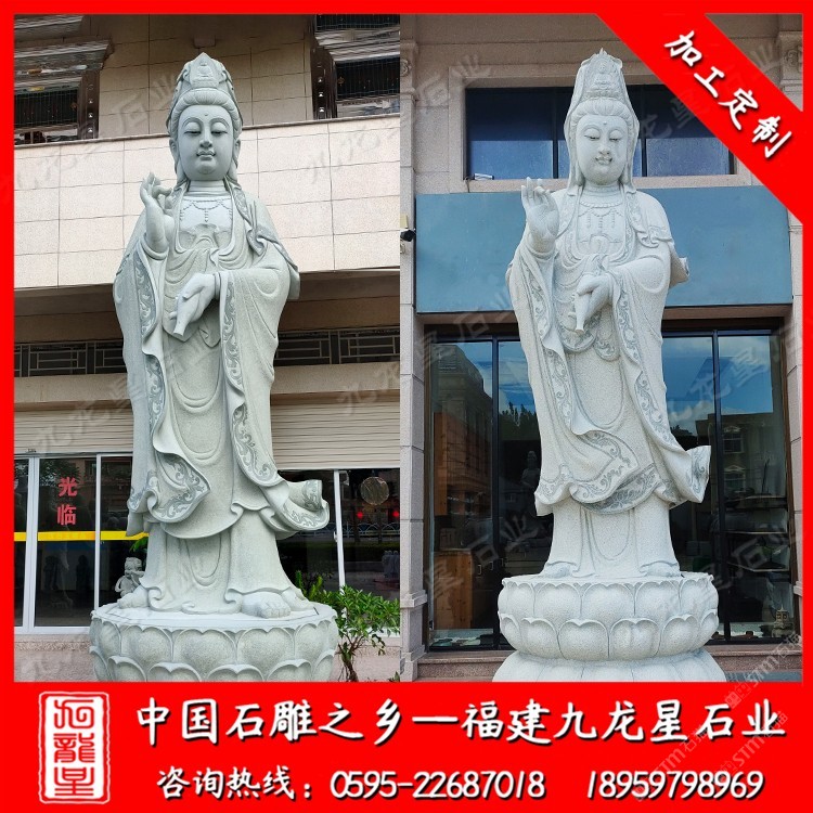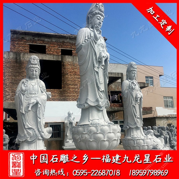 發(fā)布信息: 九龍星石業(yè)是石雕佛像廠家,常年批發(fā)石雕觀音菩薩等佛像,咨詢電話:18959798969 在寺廟,各種石雕佛像是很常見的,小到家家戶戶都會在家中供奉著石雕小型觀音佛像,大到各種寺廟廣場景區(qū)的大型石雕觀音菩薩,我們所見到的石雕觀音還都有不同的樣子,其實(shí)石雕觀音菩薩的常用形態(tài)一般分為站姿的石雕觀音,坐姿的石雕觀音和臥姿的石雕觀音,這三種觀音所展現(xiàn)的姿態(tài)不同,寓意自然也是不同的,但是是適合在不同的地方進(jìn)行擺放和供人膜拜。