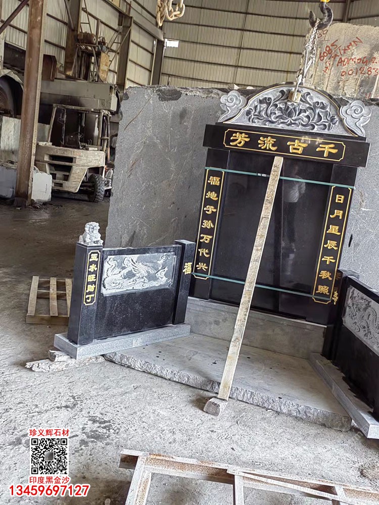 印度黑金沙墓碑套墓墓碑成品石雕刻墓碑主碑安哥拉黑石