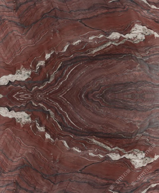 天然奢石紅絲綢背景墻