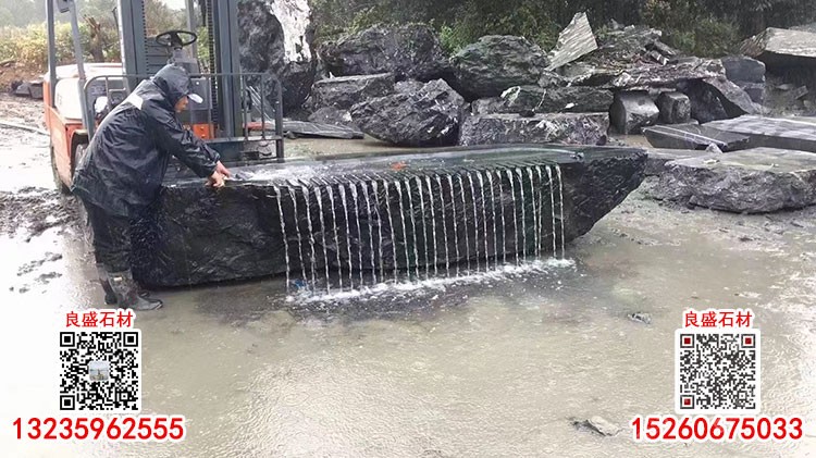 新老礦芝麻黑花崗巖水池水景石材加工戶外景觀噴水池