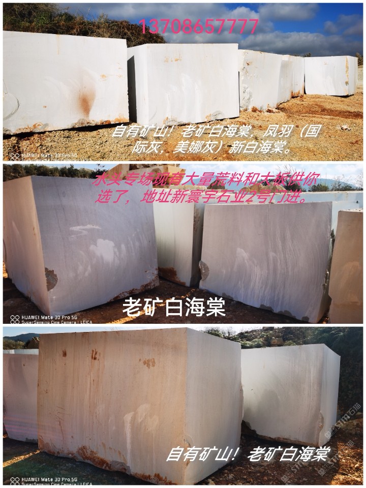 發(fā)布信息: 老礦白棠,白底白海棠,美娜灰, 水頭可以直接拿荒料和大板了, 地址:新寰宇石業(yè)2號門進(jìn)13708657777