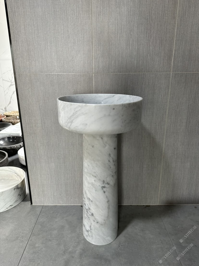 卡拉拉白柱盆 洗手盆 石材衛(wèi)浴四件套