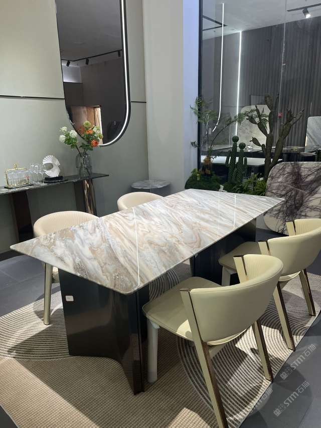 商圈 > 大理石 > 實木結(jié)合五金奢石餐桌:雪山銀狐#水頭奢石家居中心