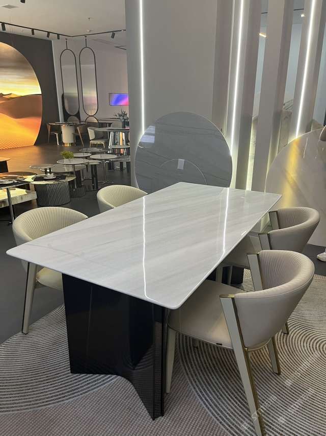 實木結(jié)合五金奢石餐桌:雪山銀狐#水頭奢石家居中心