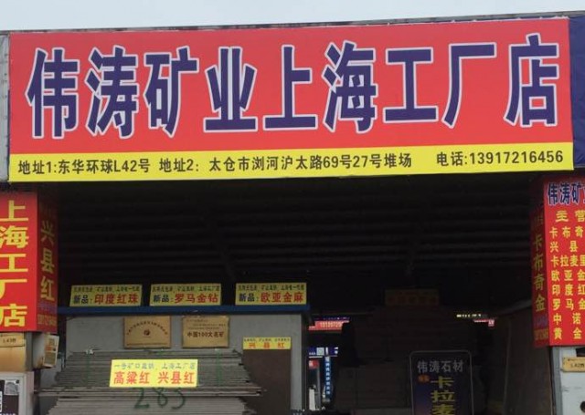 偉濤石材 聯(lián)系人:楊先生    139****6456 查看 021-****1188 查看 主營范圍: 荒料、花崗巖加工、礦山、石材交易市場、大板批發(fā)、 企業(yè)地址:江蘇蘇州太倉市S338(滬太新路)蘇州富田工業(yè)區(qū)瀏太石材市場27號(hào)堆場