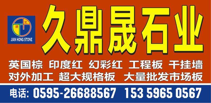福建省久鼎晟石業(yè)有限責(zé)任公司 聯(lián)系人:余小姐    153****0567 查看 0595-****8567 查看 主營(yíng)范圍: 大板批發(fā)、花崗巖加工、異型加工、 企業(yè)地址:福建南安水頭鎮(zhèn)蟠龍加油站旁邊