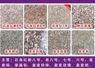 立泉主營產(chǎn)品:石島紅,石島紅(7號),石島紅8號,石島紅(老8號),石島紅(新8號),新石島紅,新石島紅(荔枝面),新石島紅(光面),皇室冰花,皇室啡1,皇室啡(新礦),皇室啡珠,皇室啡鉆,皇室啡珠2,皇室啡珠1,皇室灰企業(yè)地址:山東威海榮成市